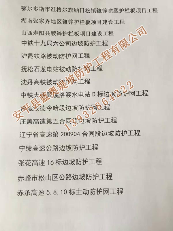 邊坡防護(hù)網(wǎng)部分工程業(yè)績一覽